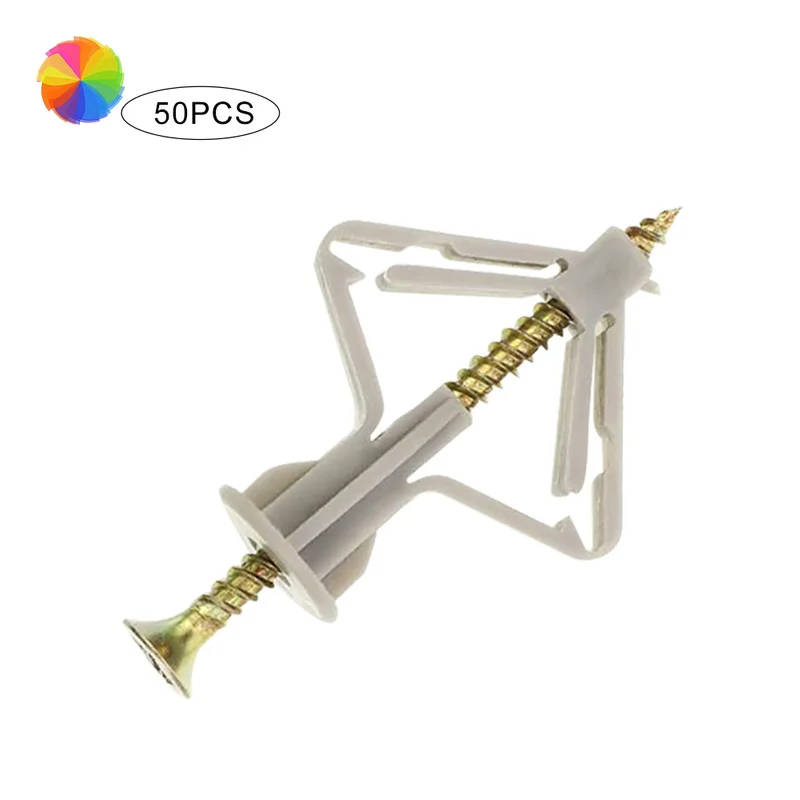 Get 50Pcs Plasterboard Dowels And Screws Plasterboard Hollow Wall Anchors Heavy-duty Dowels With ScrewCY only US $6.76 just for today
