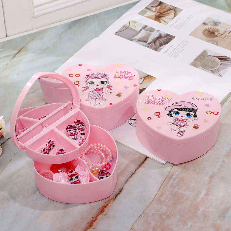 Girls Jewelry Box Heart-shaped children cartoon princess Cosmetic case cosmetics storage box necklace tiara box dressing mirror
