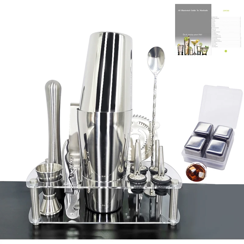 Get Cocktail Shaker Stainless Steel Bar Tools 13-Piece Bartender Kit With Stand and Recipes Booklet Reusable Ice Cubes only US $6.99 - 24.99 just for today